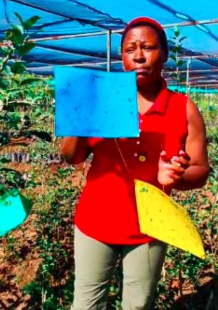 The Blue Insect trap captures thrips while the Yellow Insect Trap captures Fruit Flies one of the Organic ways Wambugu farm help control and Mitigate pests